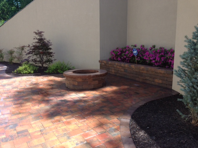 Fire Pits are great for patios and backyards. They are rather small and don't require the space that a chimney requires. Our fire pits are constructed out of retaining wall block to match your paver patio. They can be lined with fire brick on the inside for a clean look. Just like our outdoor kitchens and chimneys, are fire pits are customized for each client.